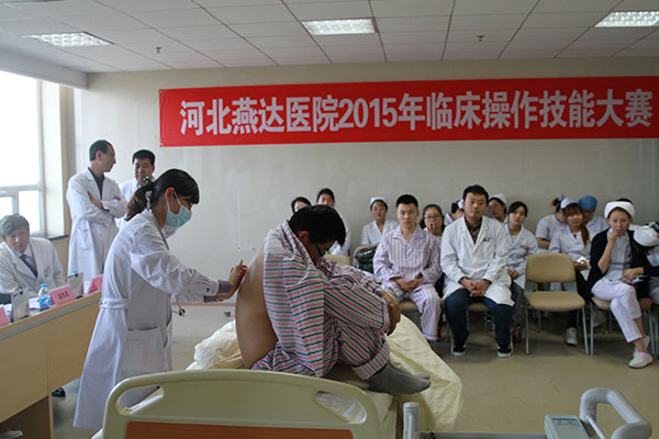 为了提高我院医护人员的临床操作水平,推进各科室间的团队协作意识,加强院内文化建设,10月19日下午,以“以赛促学,以赛促练,以赛促提高”为主题的“2015河北燕达医院临床操作技能大赛”在燕达国宾大酒店9层培训教室隆重开幕。