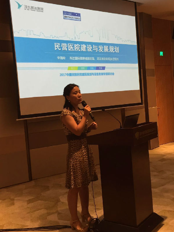 为系统总结我国一年来,民营医院发展的新变化、新经验,推动广大民营医院不断创新发展模式、强炼内功、提升核心竞争能力和发展水平。中国医学装备协会民营医院装备管理分会联合相关单位,于 2017 年 7 月 20—23 日 在苏州国际博览中心召开“中国医学装备协会第 26 届学术与技术交流年会”,河北燕达医院执行院长李海玲应主办方邀请,出席参与了“2017 中国民营医院建筑规划与装备发展专题研讨会暨民营医院管理分会一届三次委员会议”,并在研讨会中以《民营医院建设与发展规划》为主题与现场同仁进行了精彩的分享和深入交流。