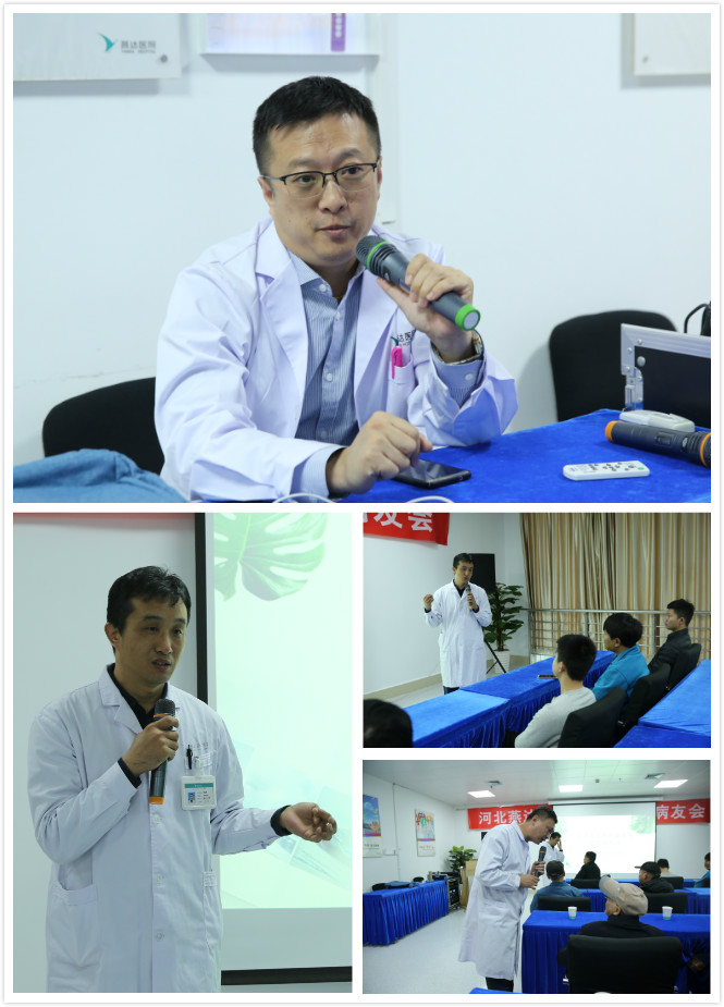 病友会由燕达医院泌尿外科主任张鹏主持。会上,泌尿外科刘海超、张家兴两位医师分别做了《泌尿系结石成因与预防》和《泌尿系结石症状与危害》专题讲座。他们对结石发生的原因、对身体的危害及诊断与治疗的必要性进行了分析讲解。同时,向病友们分享了日常生活中预防结石的注意事项。“近年来随着医学技术的不断进步,泌尿系结石的微创治疗方法得到了广泛应用,效果都非常好。”随后,唐伟副主任医师以《泌尿系结石的诊治》为题,深入浅出地讲解了各类泌尿系结石的治疗方法及成功经验。