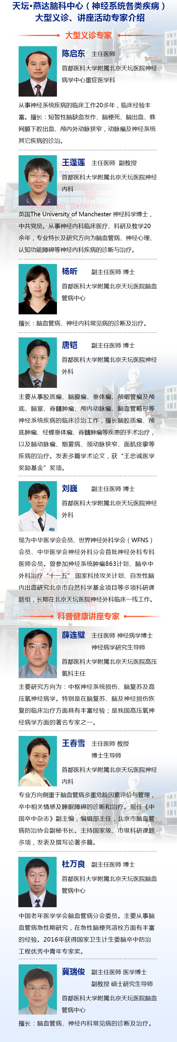 义诊地点:燕达医院脑科中心(神经内科、外科)诊区