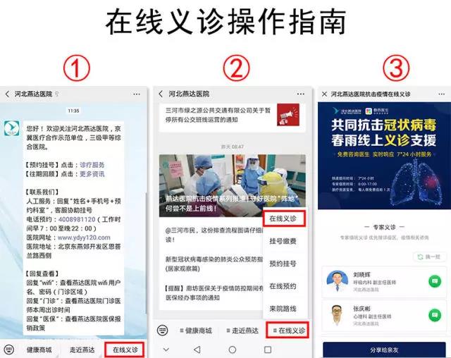 河北燕达医院线上义诊通道开设科室涵盖了内、外、妇、儿等各个学科。未来几天,还会有更多的医生上线。