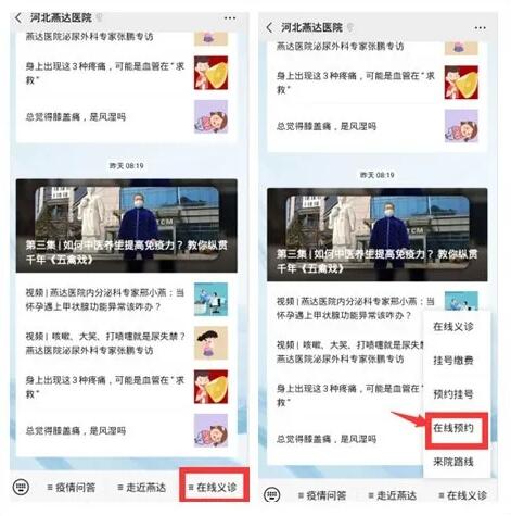(1)通过“河北燕达医院微信公众号”预约挂号:
