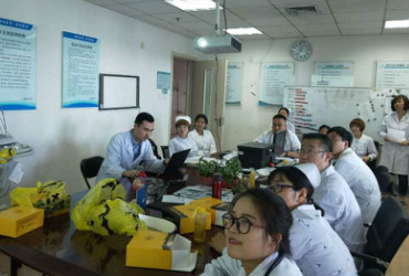 4月24日午休时,燕达医院心内一科医生办公室内却充满了浓厚的学习交流气氛,全科医护人员主动放弃午休时间进行着业务培训,只见大家认真地看着墙面上的PPT投影,听着刘明皓医师的讲解,并不时低头做着笔记……