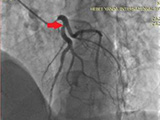 患者男性,52岁,1周前(2018-4-10)突发胸痛3小时,伴大汗,心电图前壁导联明显的ST段弓背向上抬高,以及心肌坏死标记物存在有意义的升高,明确诊断为:冠心病,急性前壁心肌梗死,遂来我院就诊,我科启动绿色通道,为患者实施急诊冠脉造影检查