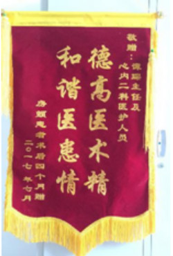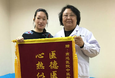 2018年1月19日上午10时许,燕达医院中医科门诊八诊室内,曾深受不孕困扰频繁出入此诊室、如今已成功怀孕四个多月的患者小蓉(化名),在家人的陪伴下亲自将一面印有“医德医术赛华佗,心热似火如家人”的锦旗送到了杜蓓主任手上。