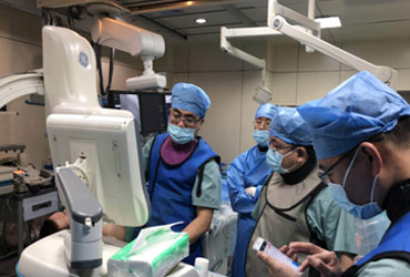 昨天(2017-11-30)我院心脏中心成功为一例肥厚心肌病患者成功实施微创经皮室间隔酒精化学消融术。该患者男性,48岁,顽固性阵发性心前区疼痛4年,近1月显著加重,偶伴有严重呼吸困难及视物模糊,查体发现心脏杂音